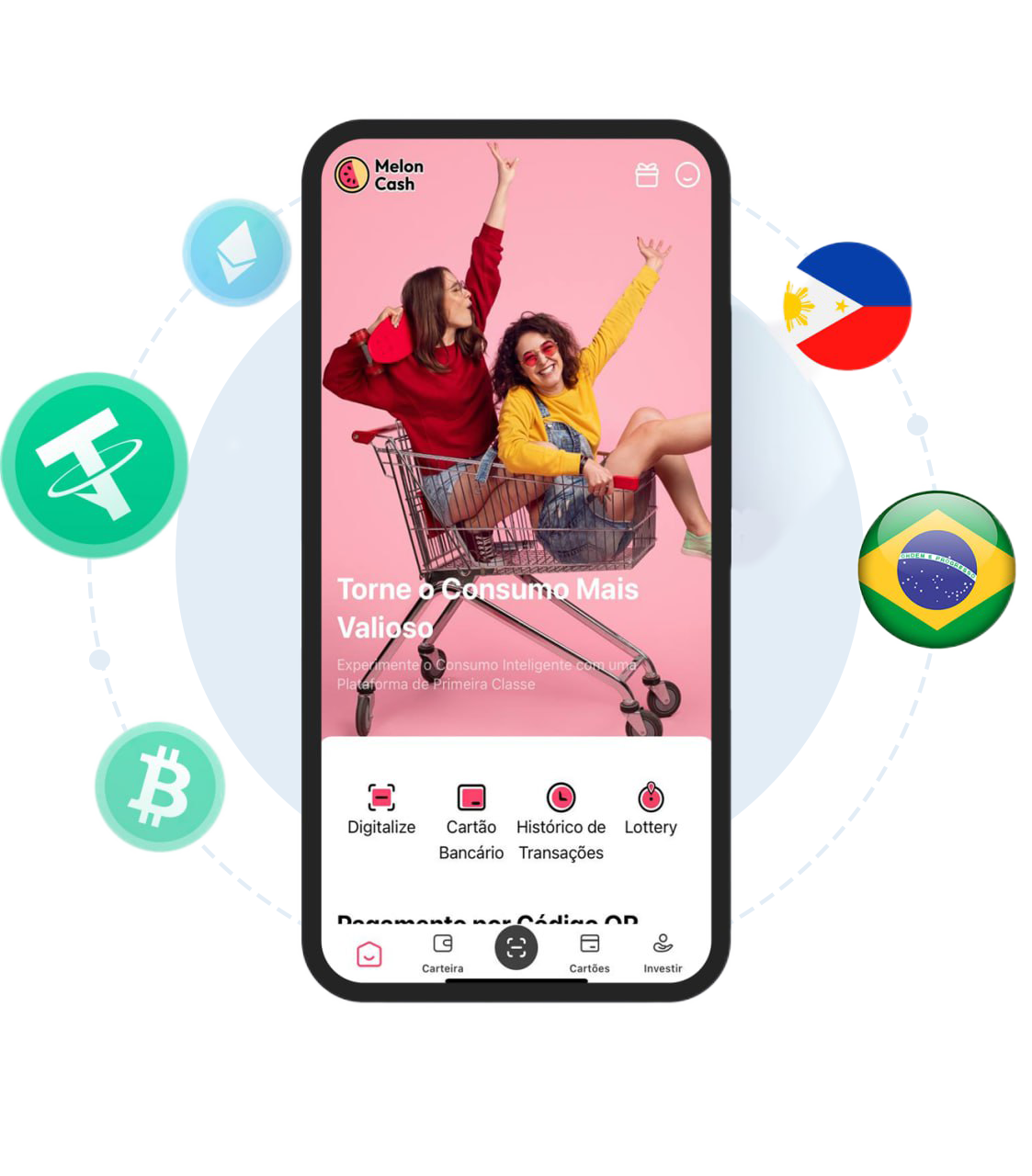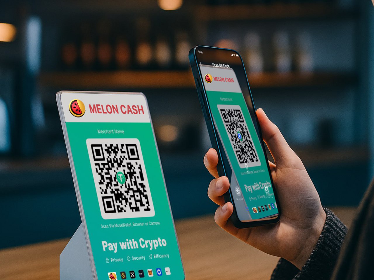 Escaneie o código QR e pague com o aplicativo MelonCash.